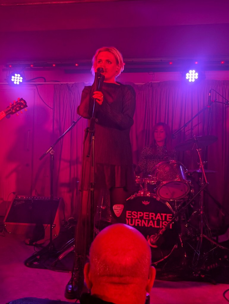 The brilliance of Desperate Journalist comes from the versatility of singer Jo Bevan to bring their songs to life, whether on the guitar led shimmering indie anthems of Cedars or Satellite or on the bass and drum driven post punk of Hollow and Fault. But despite the intensity of their live performance the band were in jovial mood, having the awareness to know when to lighten the mood, often by poking fun at themselves – whether it was by making the crowd cheer for an encore despite not physically leaving the stage, making light of their early recordings as being sad or introducing Cedars as being “a song about trees or summat”