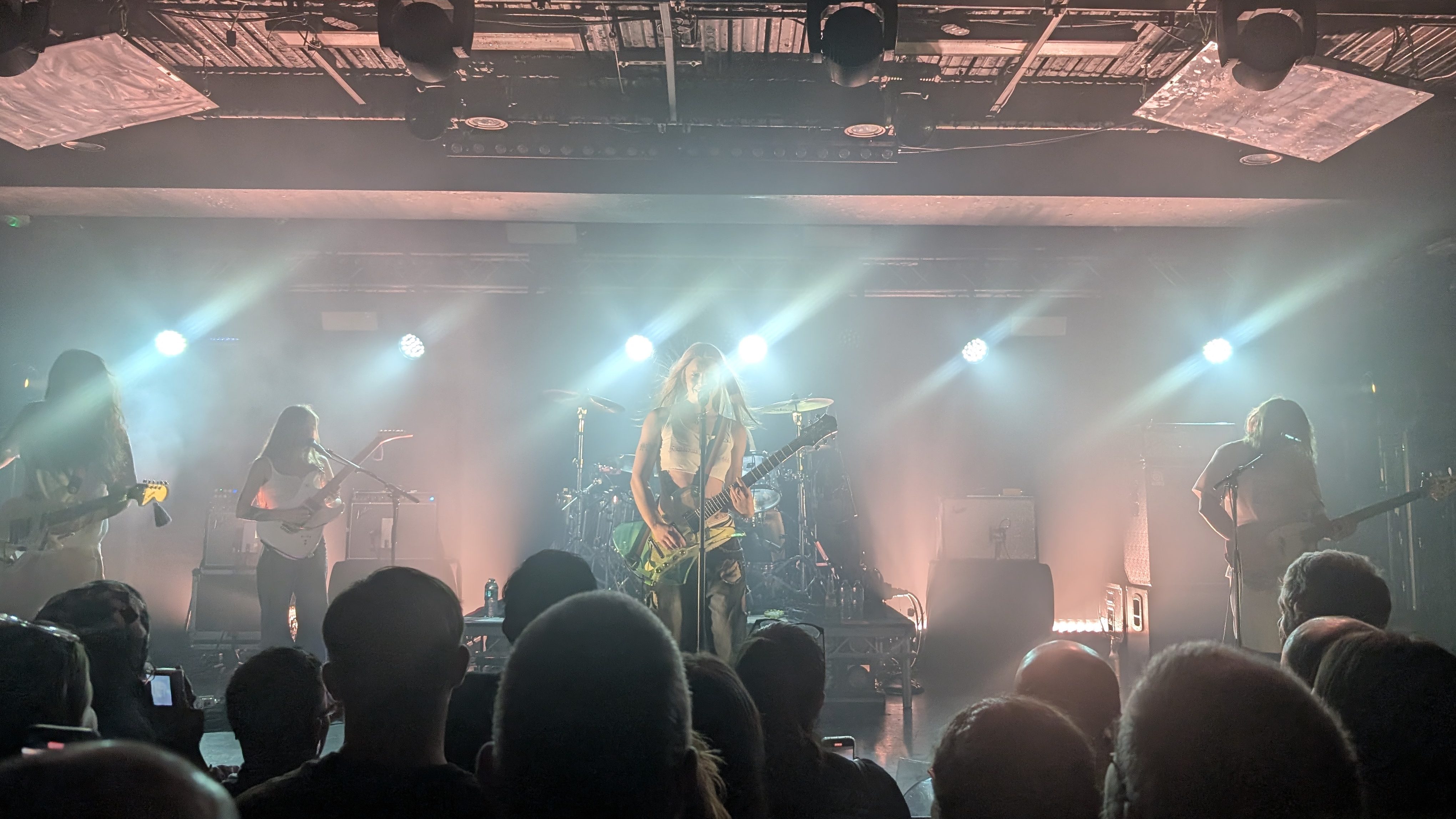 Gone were the ankle length dresses that seemed so fitting for the whimsicalness of their early material, instead singer Rhian Teasdale was now a cocktail of ripped jeans, toned abs and tattoos, striding the stage with increased assurance and confidence. The previous times I’d seen them guitarist Hester Chambers almost felt like a secondary frontwoman, now she lurked towards the back of the stage, shunning the limelight and seemingly avoiding casting her glance towards the audience. Working their way through a set comprising almost equal parts new and old, the likes of mangetout felt like it could have slipped straight onto the debut album and nobody would have felt it out of place, whilst Pillow Talk showed a more aggressive edge to the band’s output, feeling reminiscent of early Foo Fighters and other nineties alternative rock acts.