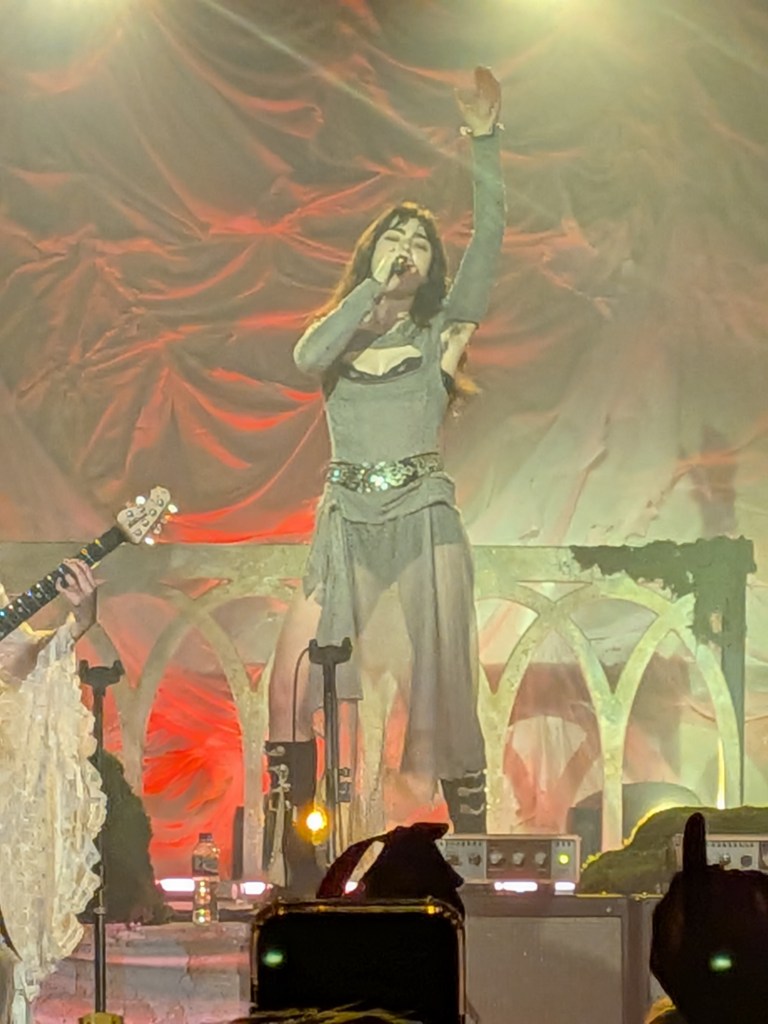 As with all groups that have grown to iconic level, The Last Dinner Party mean more to the fans than just the music. Their baroque fashion sense was worn by large swathes of the audience, bringing a heightened sense of style and extravagance to the night. And many of those sporting the traditional gig going outfit of jeans and t-shirts had stylised their outfits with the Ribbons acquired as part of the charity drive in support of Bankuet the band had partnered for again this tour. Whilst pre-concert audiences always have a certain level of anticipation hanging over them, sometimes there’s an indescribable extra hum of excitement as they impatiently wait for their heroes to emerge, with passage to anywhere near the barrier blocked off long in advance of the start of the set.