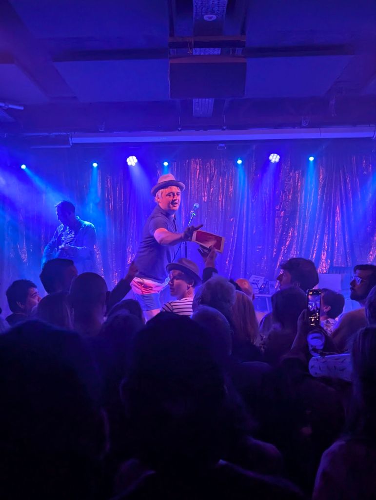 The internet era has largely seen the death of the home made fanzine, so it felt like stepping into the past when whilst queuing for Pete Doherty‘s solo show at Leeds’ Brudenell Social club a seller came round trying to sell a collection of writings by Pete himself. Things took a slightly more bizarre twist later in the evening when Pete paused his set to try to drum up more sales, gleefully handing across copies to punters who crossed his palm with a crisp ten pound note.
